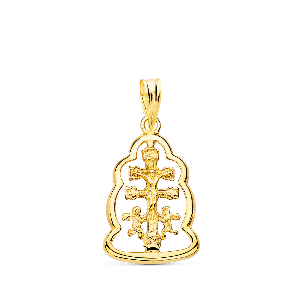18K COLGANTE CRUZ DE CARAVACA ORLA 18X14 MM
