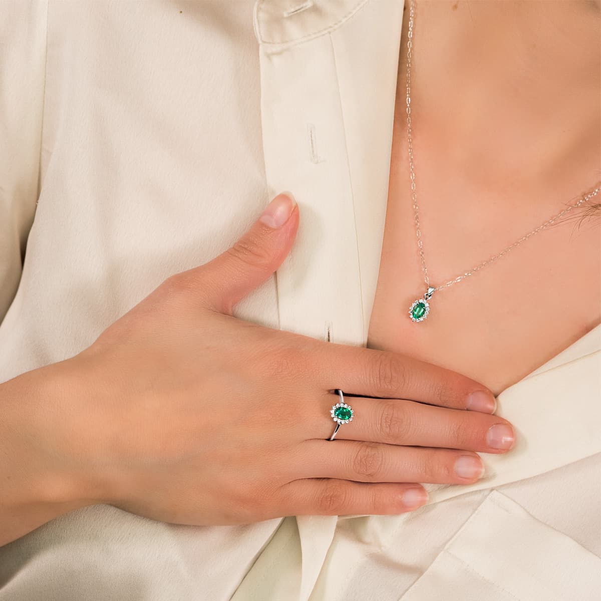 18K COLGANTE O.BLANCO ESMERALDA 0.39 QT. 14 DIAMANTES 0.14 QTS. SI-H. 10X8 MM