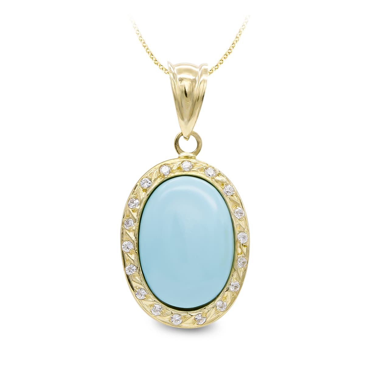 18K COLGANTE ORO AMARILLO TURQUESA FINA 14 X 10MM CIRCONITAS