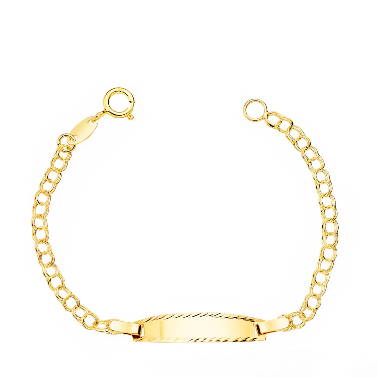 18K ESCLAVA BEBE ORO AMARILLO HUNGARINA CHAPA BRILLO TALLADA 19X4 MM 11.5 CM