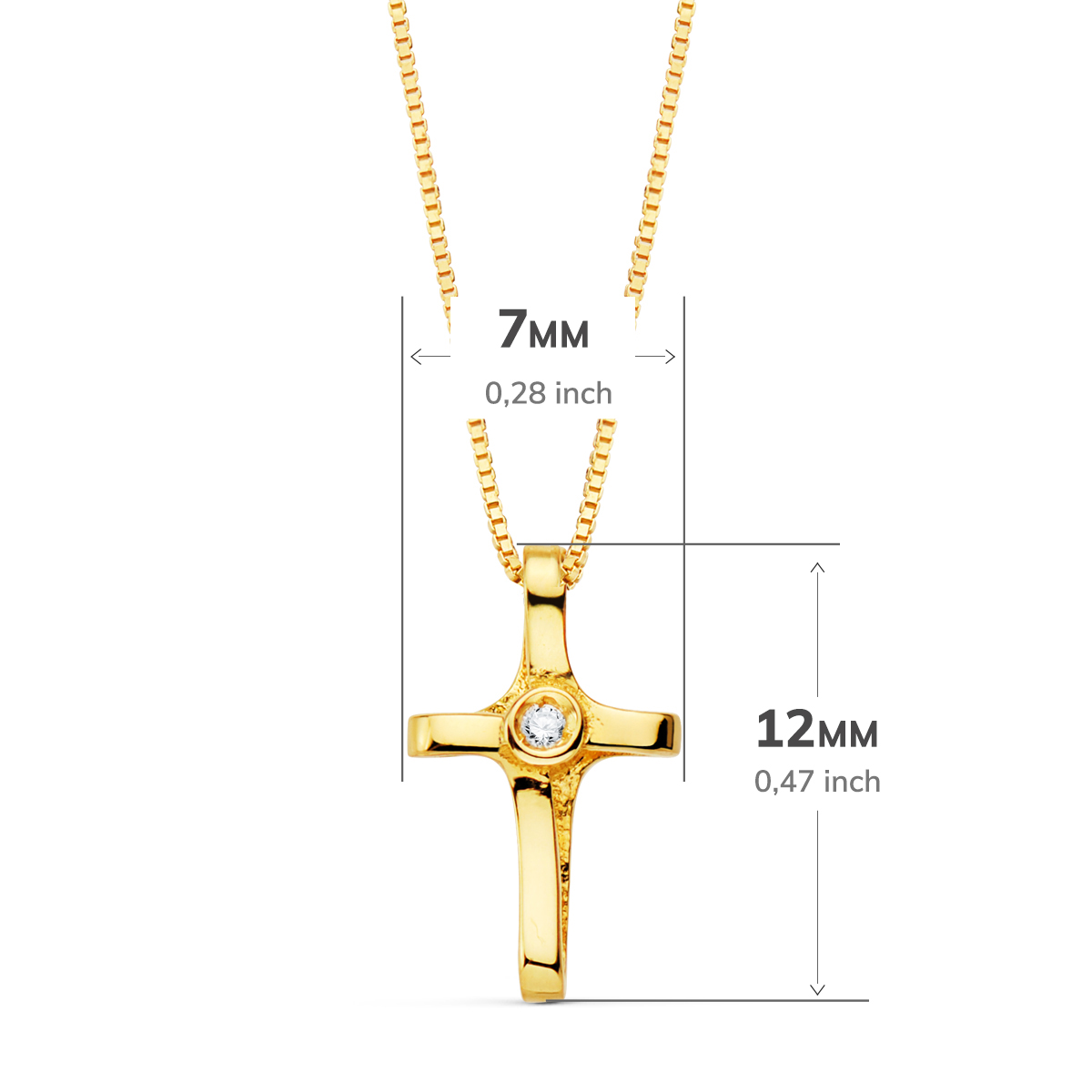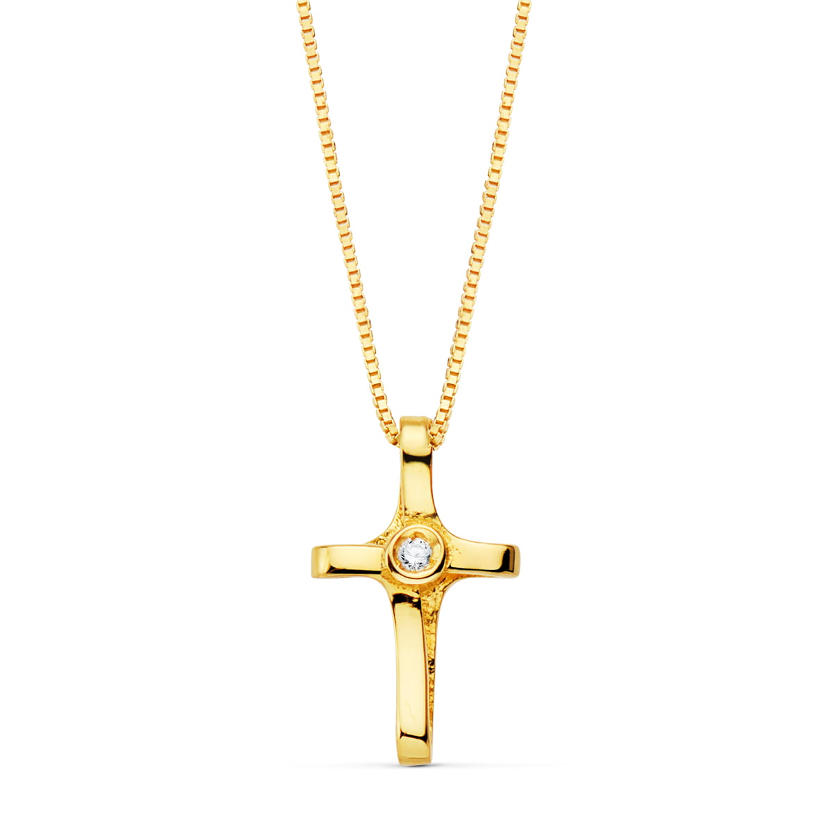 18K GARGANTILLA CRUZ 12X7 MM 1 DIAMANTE 0.010 QT.CADENA VENECIANA 45CM G-VS2