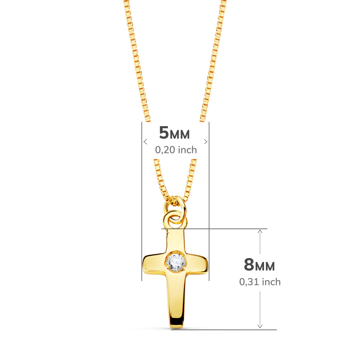 18K GARGANTILLA CRUZ 8X5MM 1 DIAMANTE 0.015QT. CADENA VENECIANA 45CM G-VS2