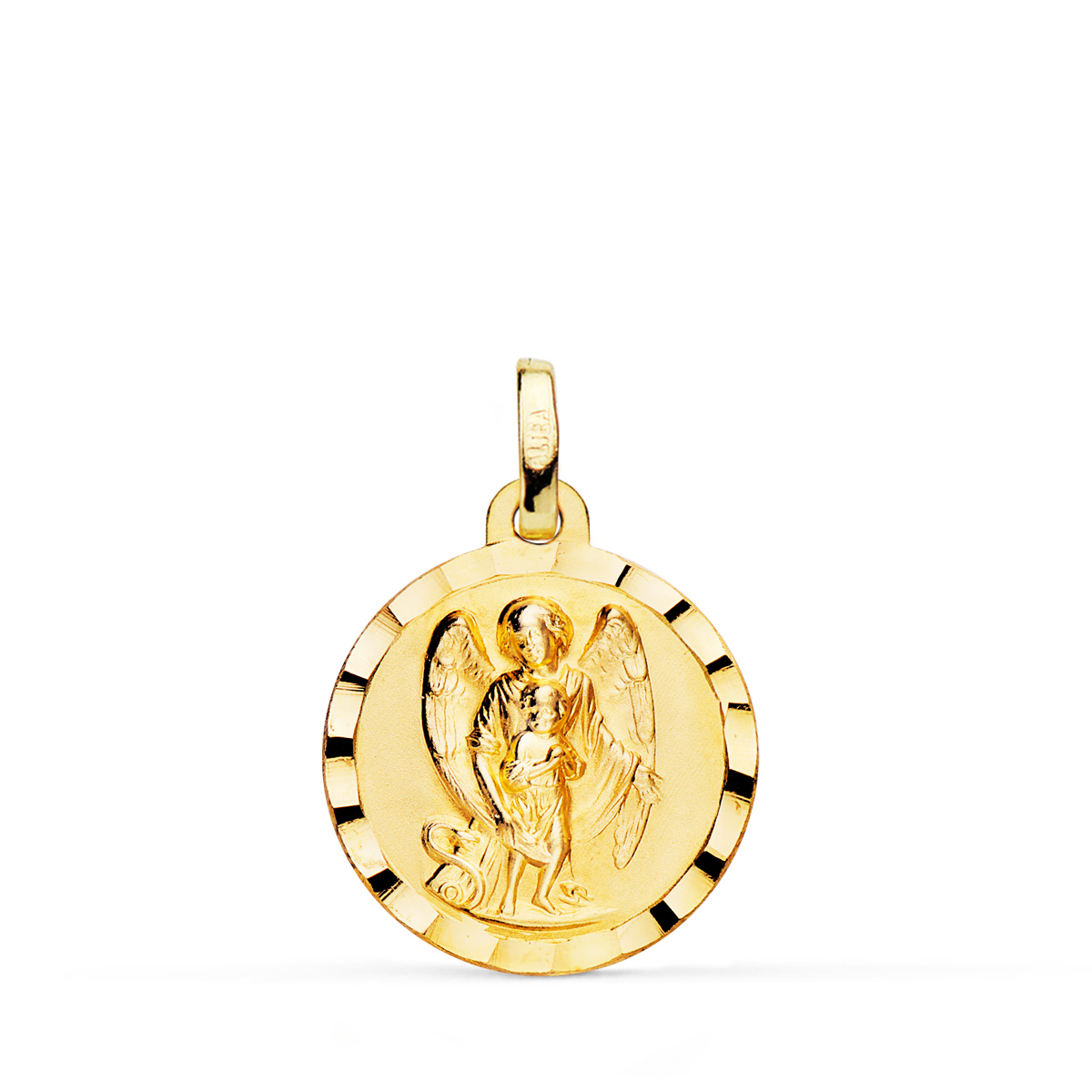 18K MEDALLA ORO AMARILLO ANGEL DE LA GUARDA BORDE TALLADO. 18 MM