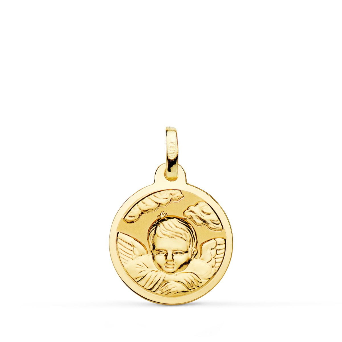 18K MEDALLA ORO AMARILLO ANGEL NIÑO EN LA NUBE BRILLO. 16 MM