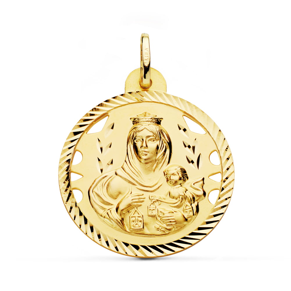 18K MEDALLA VIRGEN DEL CARMEN CALADA HELICE 28 MM