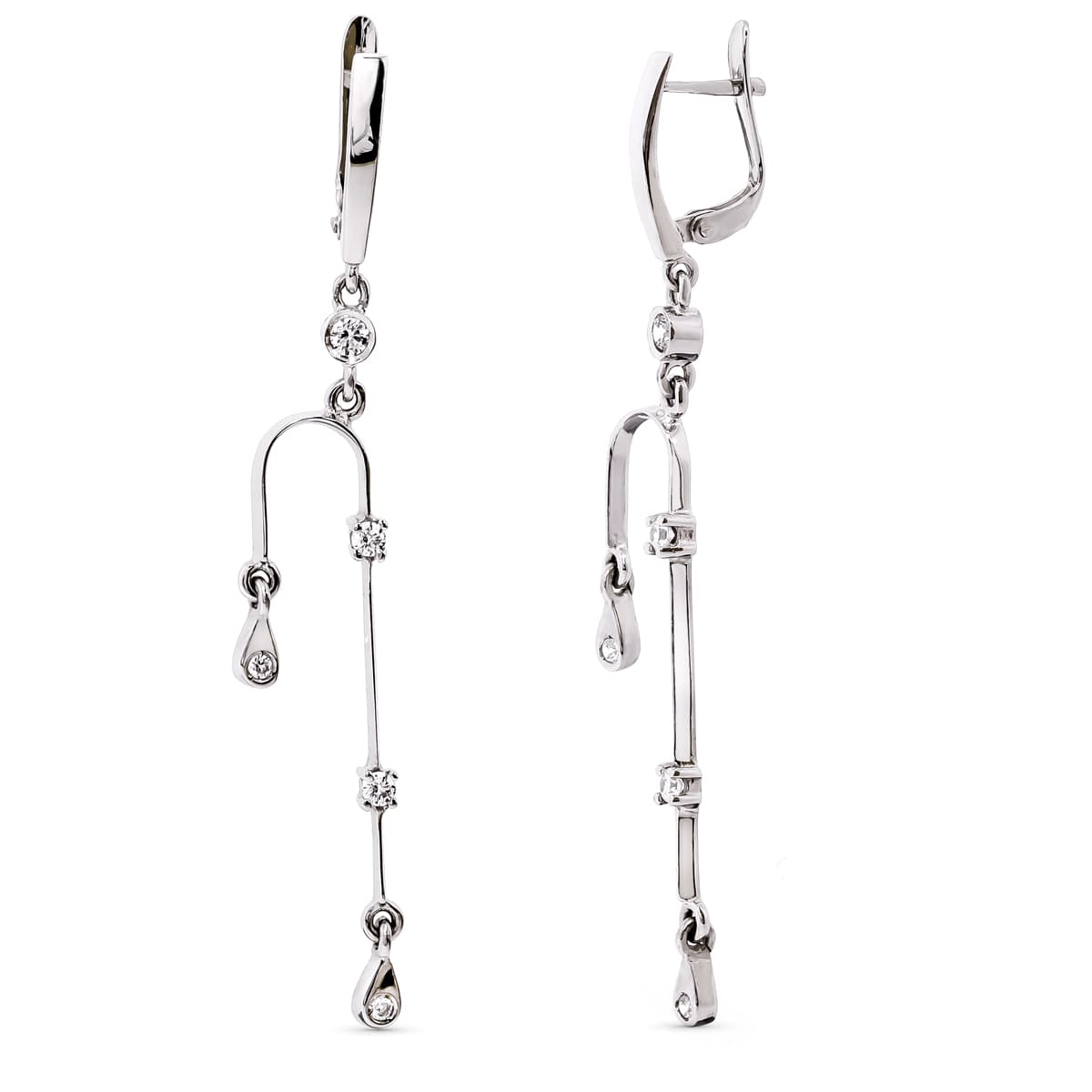 18K PENDIENTES LARGOS ORO BLANCO CIRCONITAS 59X7 MM