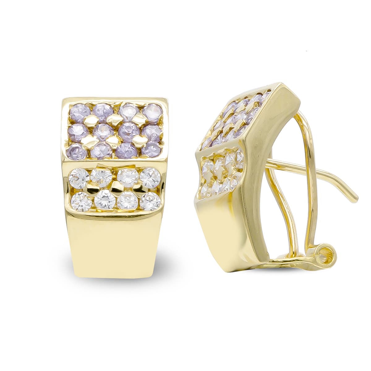 18K PENDIENTES ORO AMARILLO CIRCONITAS AMATISTAS Y BLANCAS