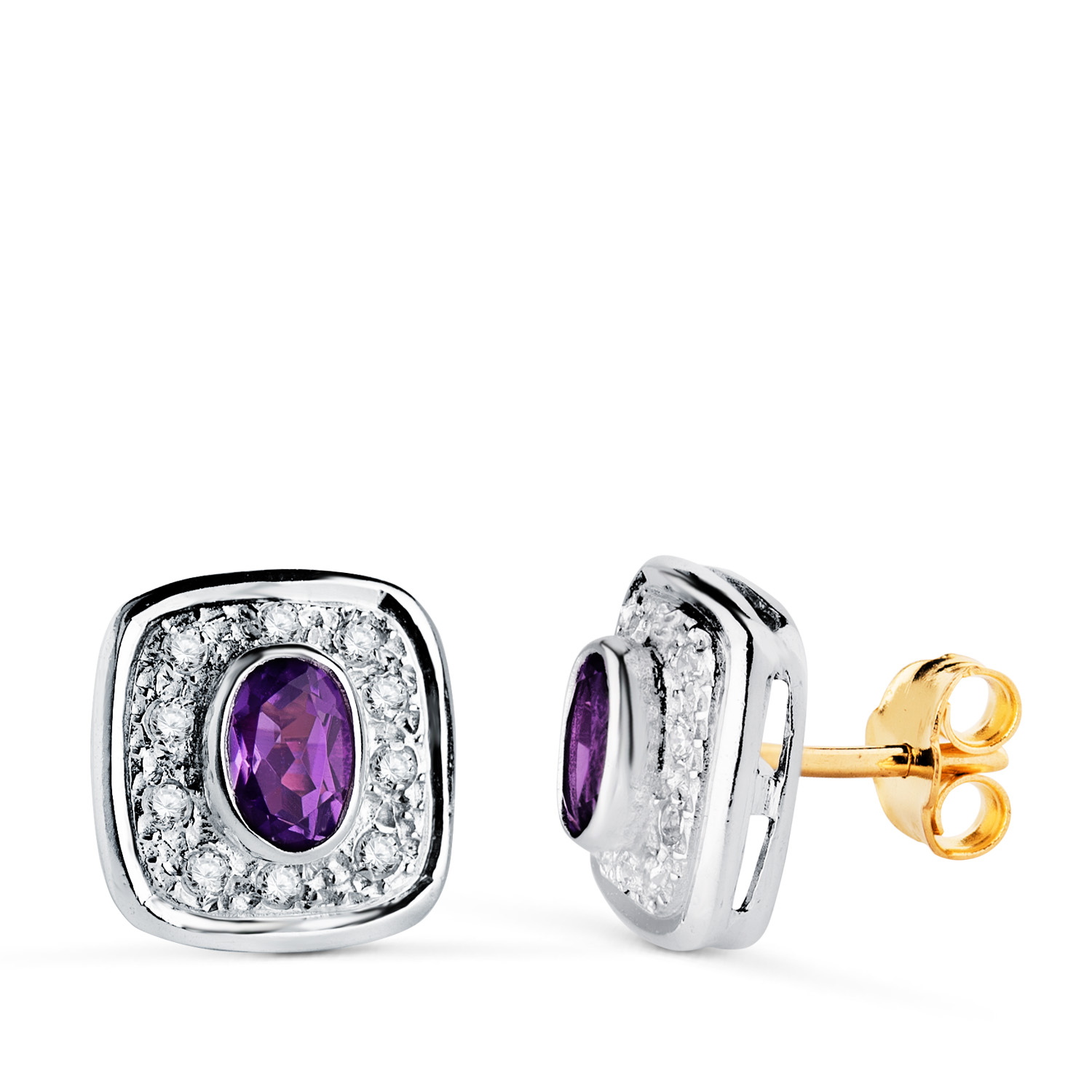 18K PENDIENTES ORO BICOLOR AMATISTA Y CIRCONITAS