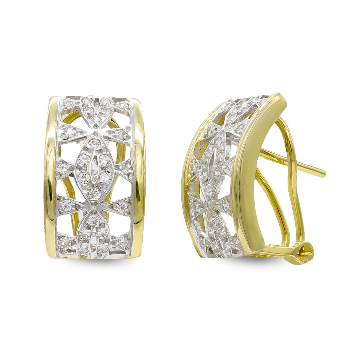 18K PENDIENTES ORO BICOLOR CON CIRCONITAS CIERRE OMEGA