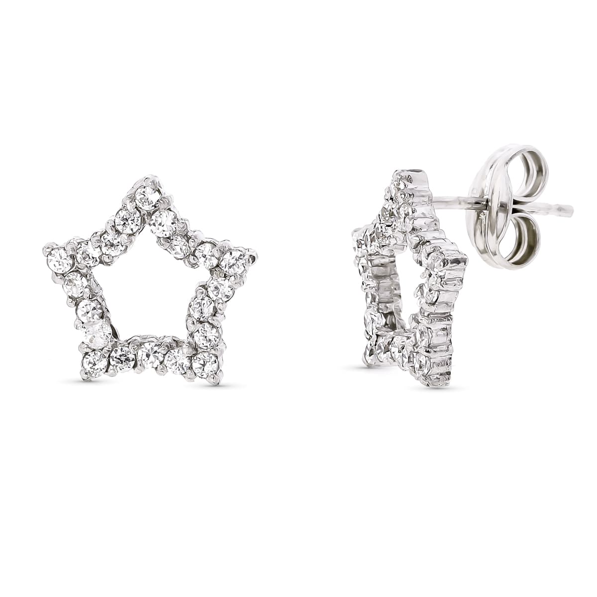 18K PENDIENTES ORO BLANCO ESTRELLA 12X12 MM CIERRE PRESION