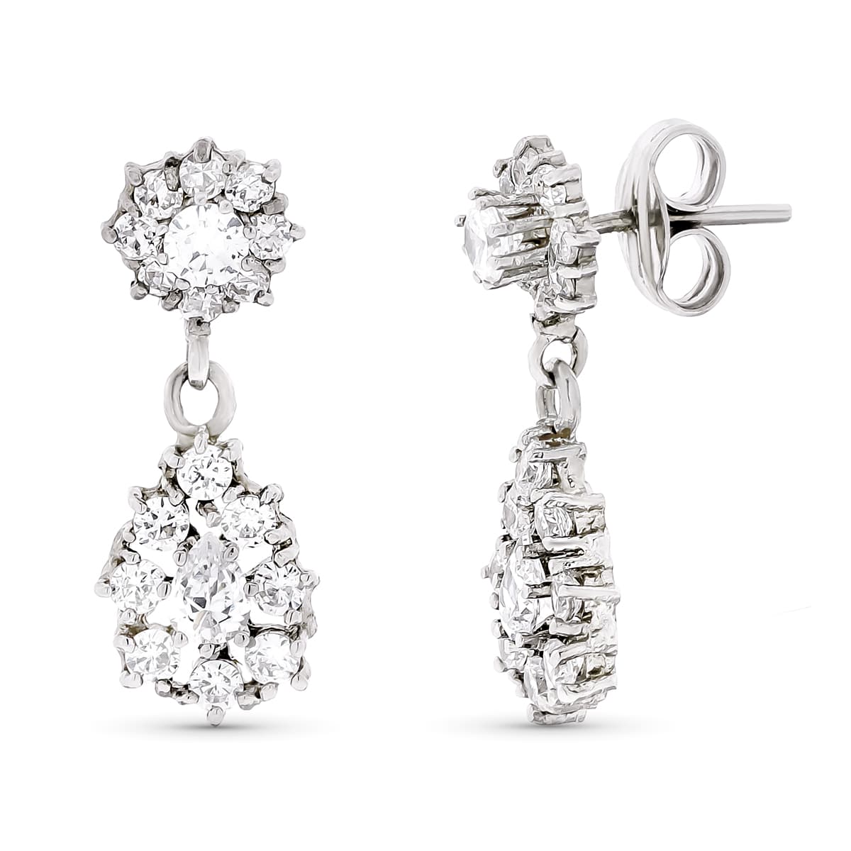 18K PENDIENTES ORO BLANCO LARGOS CIRCONITAS 21X8 MM CIERRE A PRESIÓN