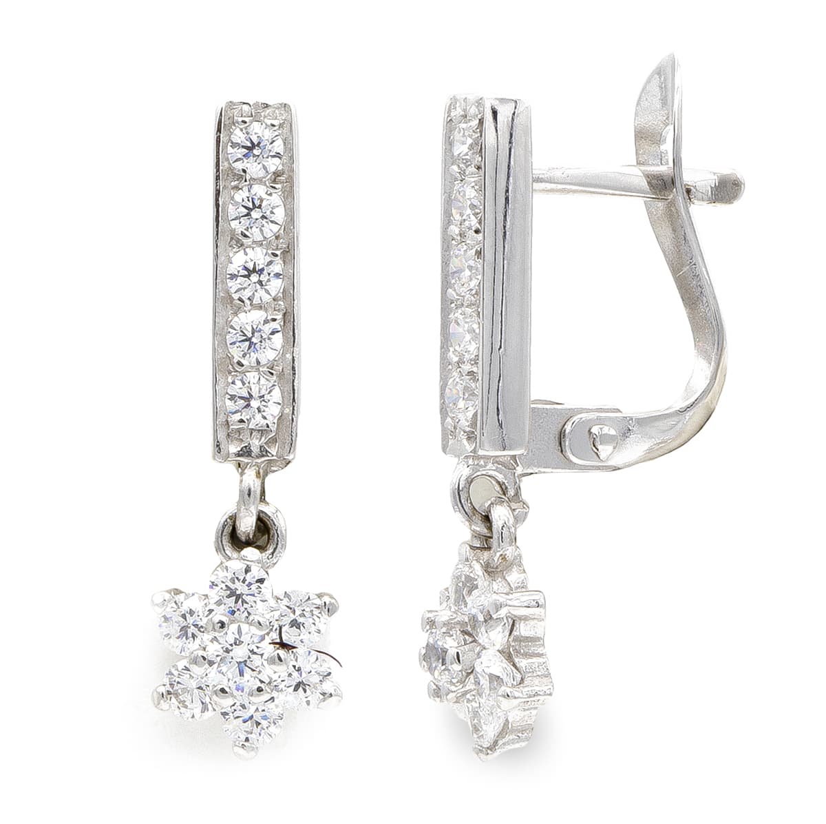 18K PENDIENTES ORO BLANCO LARGOS CIRCONITAS