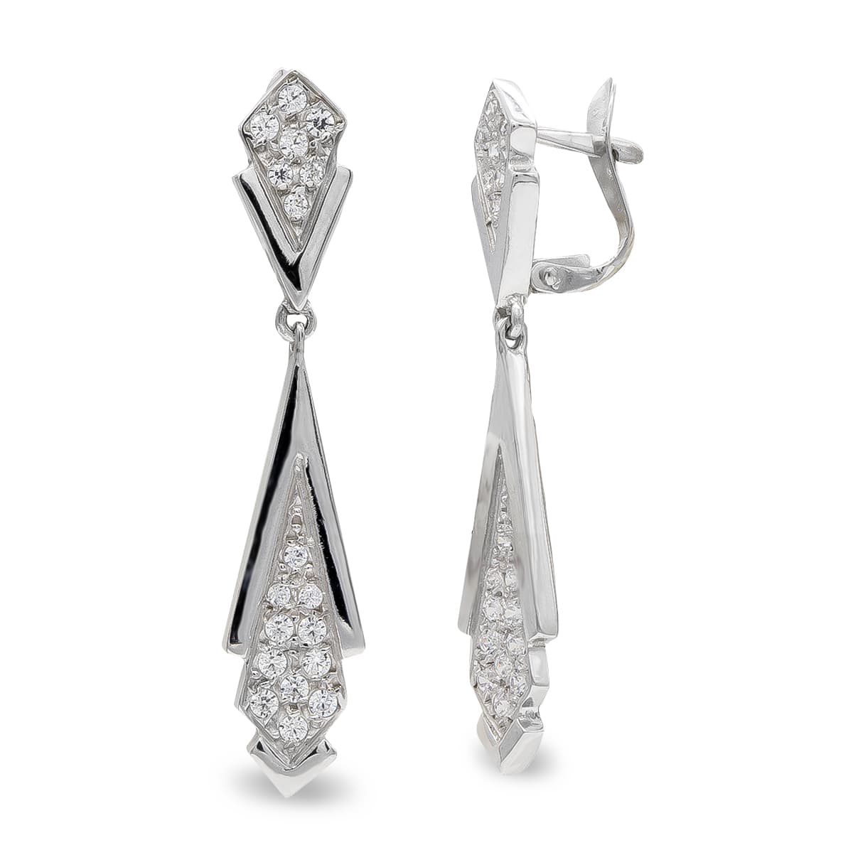 18K PENDIENTES ORO BLANCO LARGOS CIRCONITAS