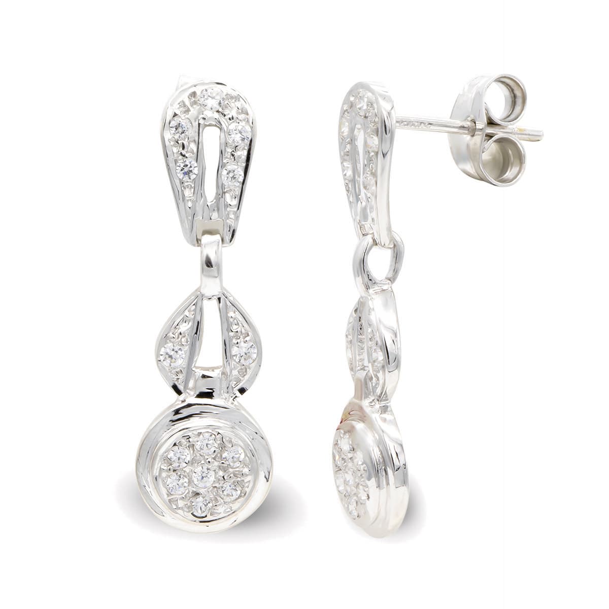 18K PENDIENTES ORO BLANCO LARGOS Y CIRCONITAS