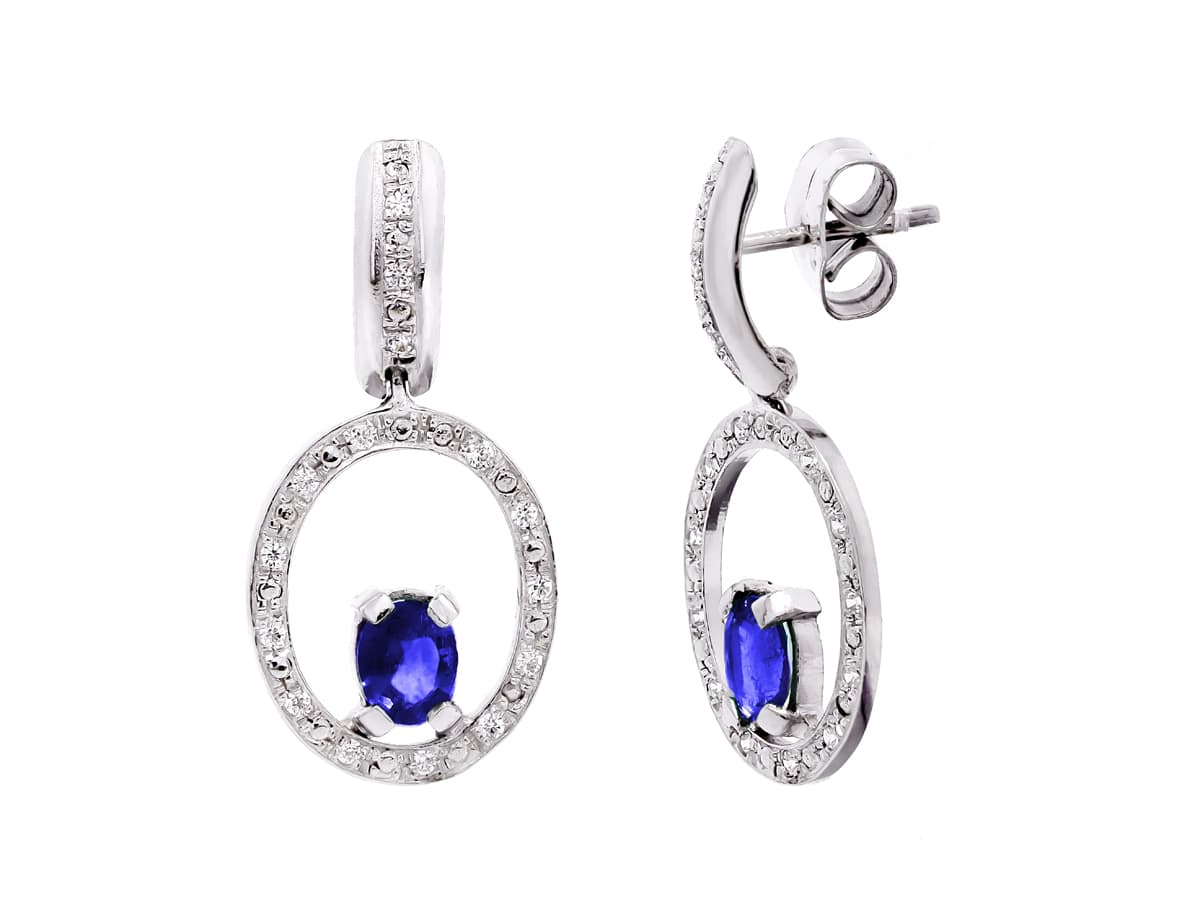 18K PENDIENTES ORO BLANCO ZAFIRO Y CIRCONITAS