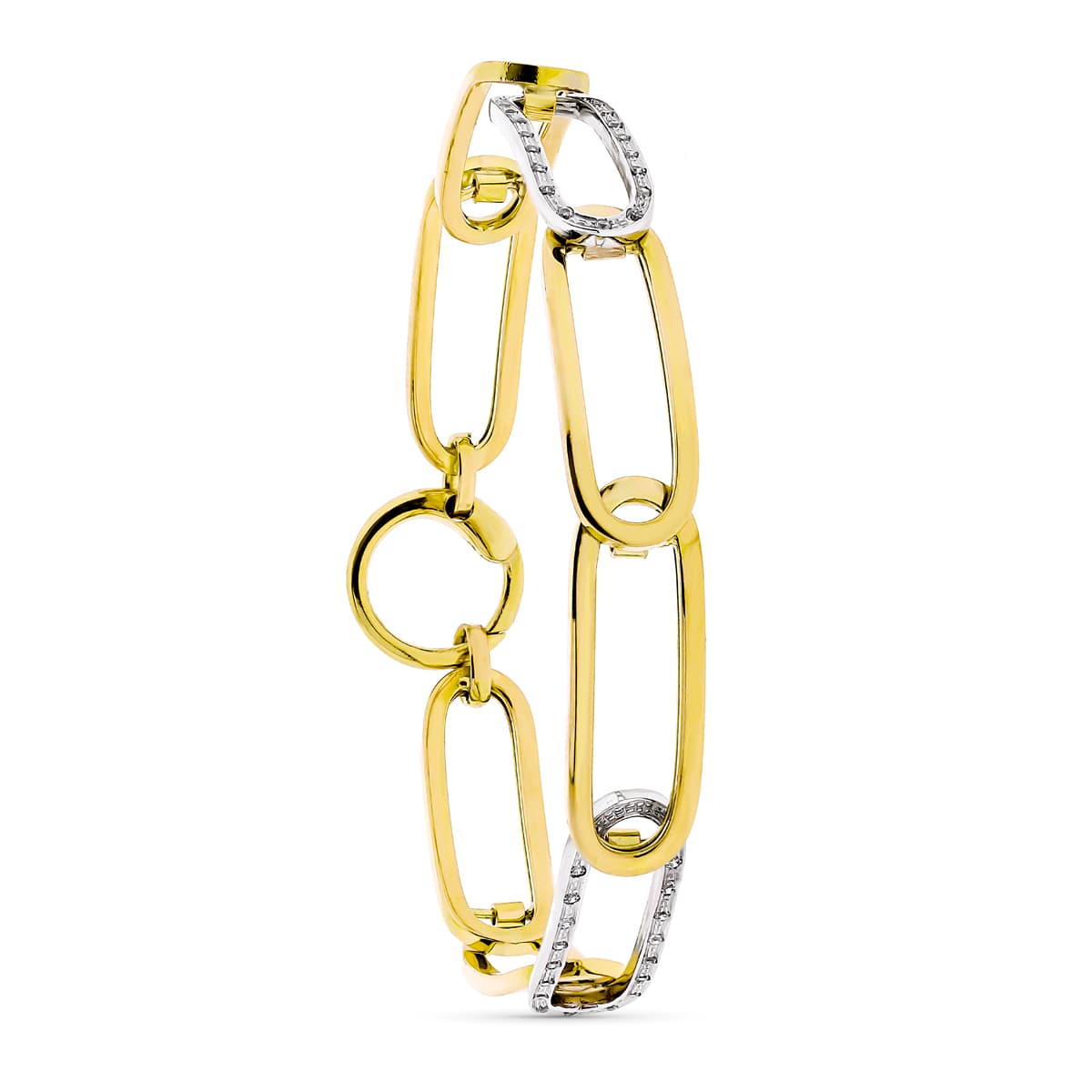 18K PULSERA ESLABONES CALADOS BICOLOR CIRCONITAS. ANCHO: 9 MM. LARGO: 20 CM.