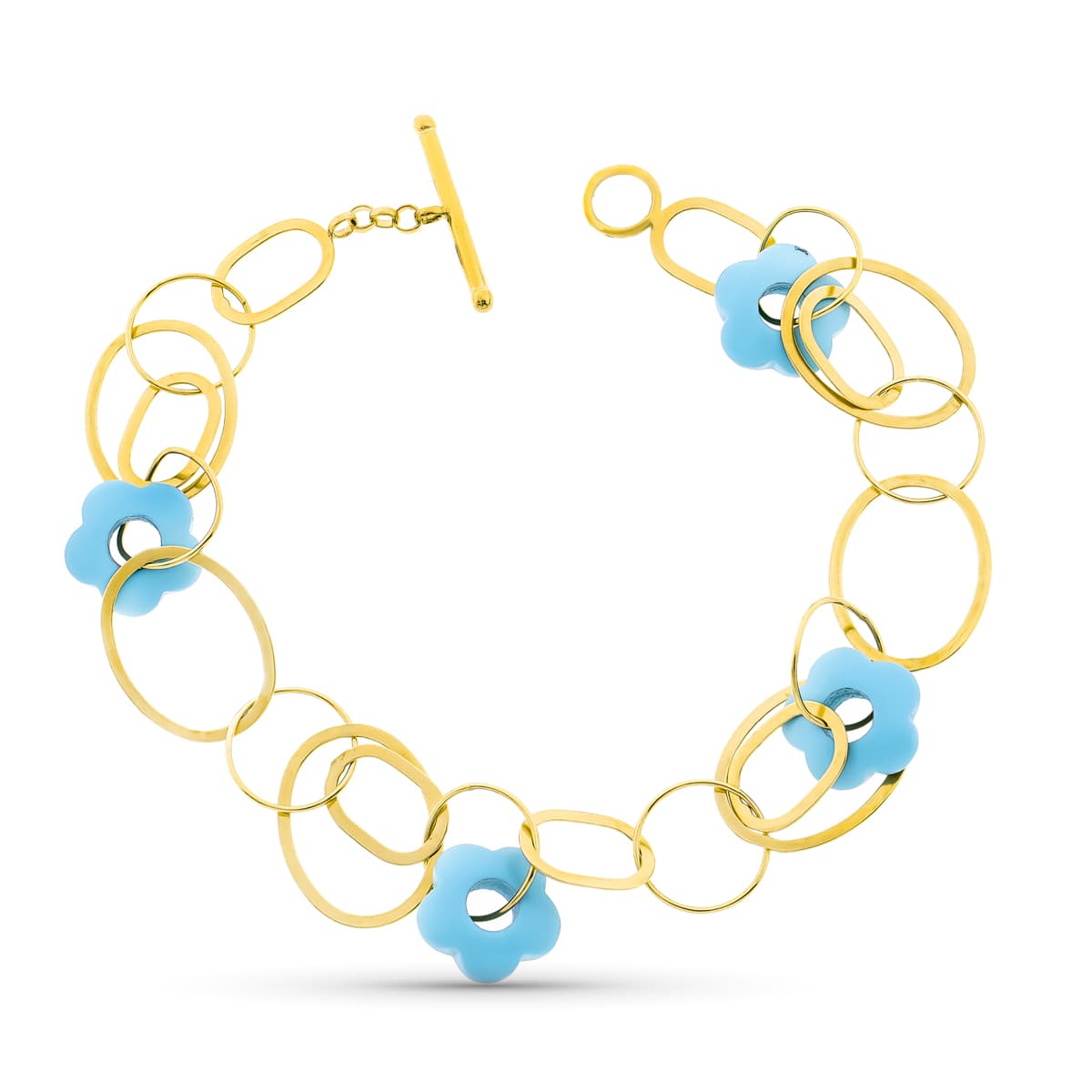 18K PULSERA ORO AMARILLO CIRCULOS Y FLOR TURQUESA 20 CM