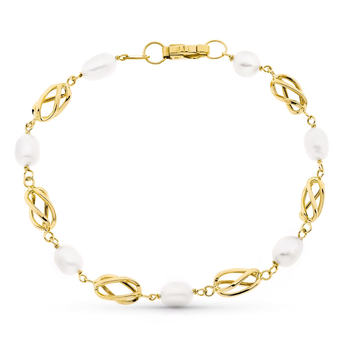18K PULSERA ORO AMARILLO CON PERLA Y JAULAS
