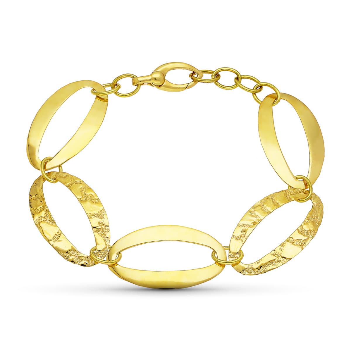 18K PULSERA ORO AMARILLO ESLABON OVAL BRILLO Y LABRADO