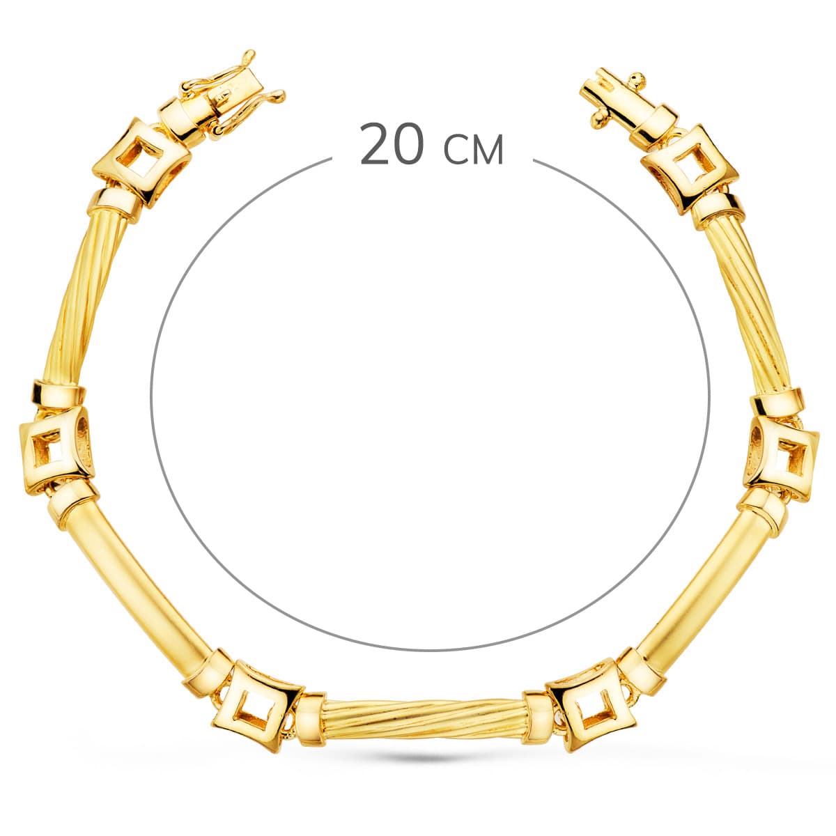 18K PULSERA ORO AMARILLO ESLABONES Y CUADRADOS ANCHO 8 MM LARGO 20 CM