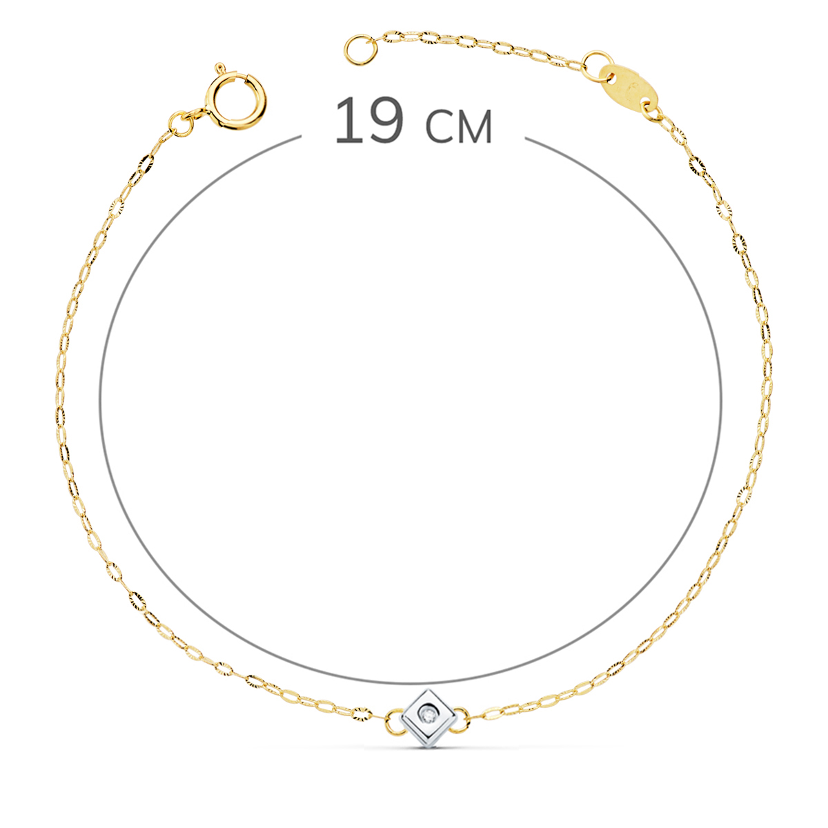 18K PULSERA ORO BICOLOR CHATON DE ROMBO CON DIAMANTE SI-H 0,015 QTES. 19 CM