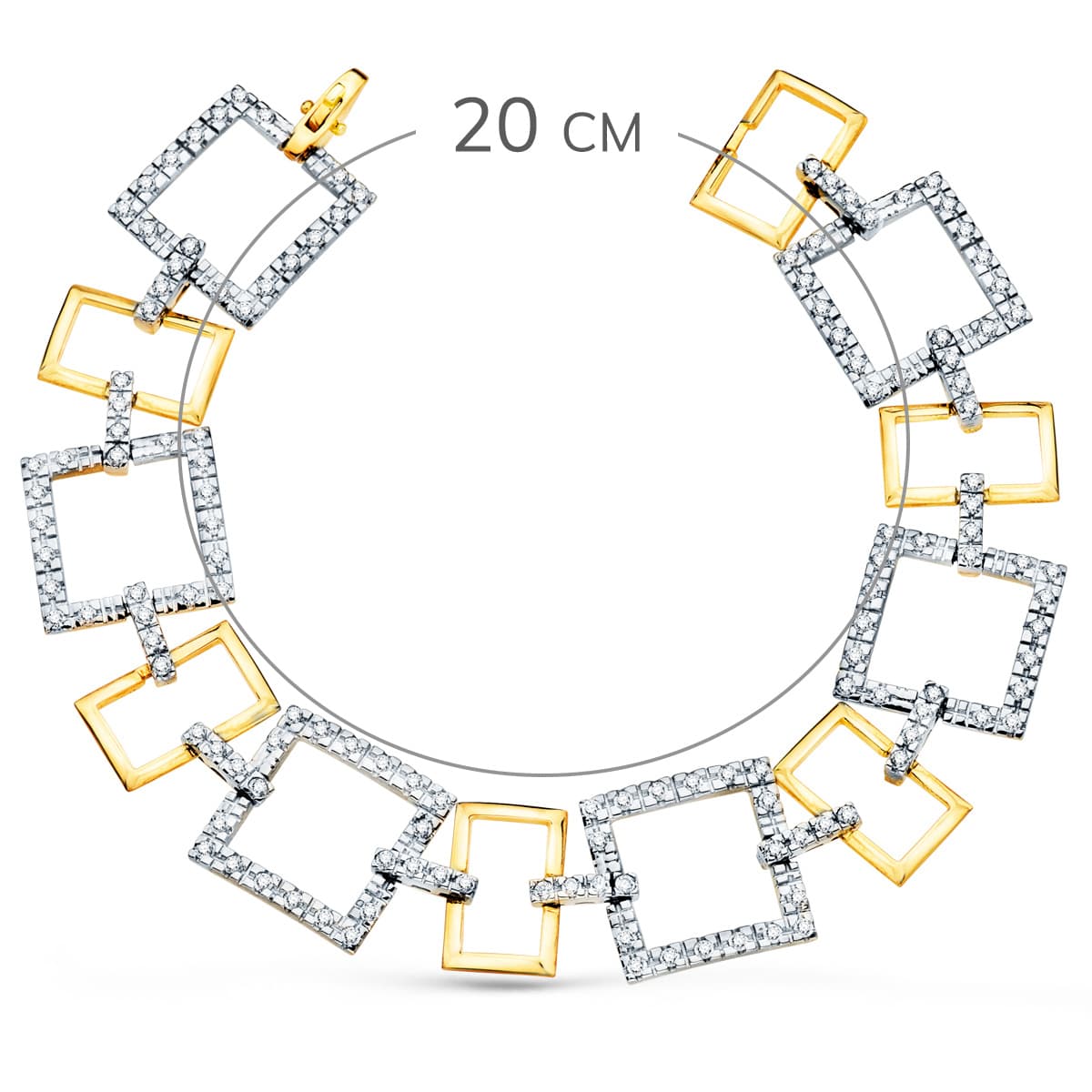 18K PULSERA ORO BICOLOR ESLABONES CUADRADOS Y MOTIVOS CON CIRCONITAS 20 CM