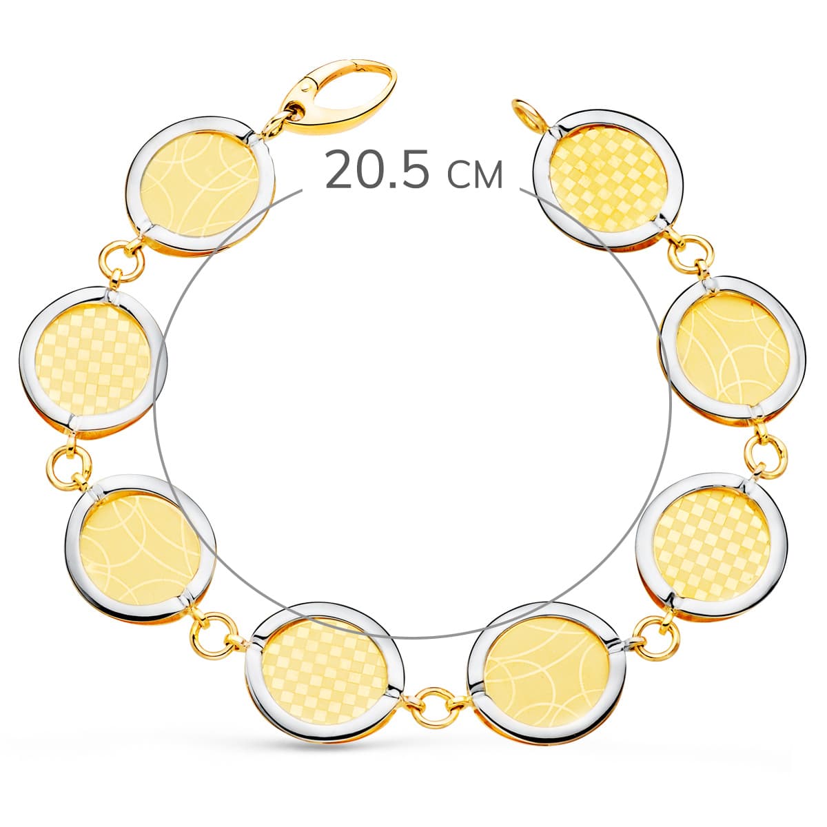 18K PULSERA ORO BICOLOR ESLABONES REDONDOS DISEÑOS MATIZADOS. 20.5 CM