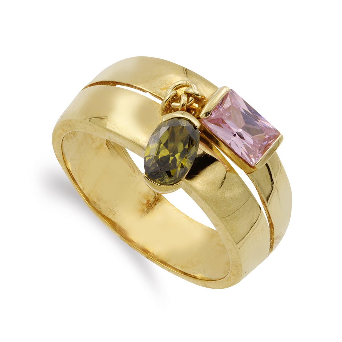 18K SORTIJA ORO AMARILLO DOS PIEDRAS ROSA Y VERDE