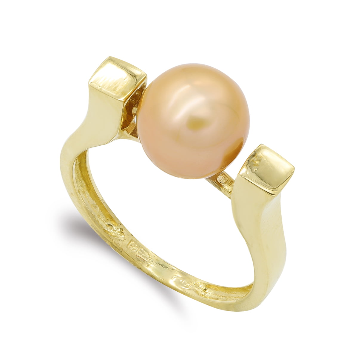 18K SORTIJA ORO AMARILLO PERLA CAMEL 9 MM.