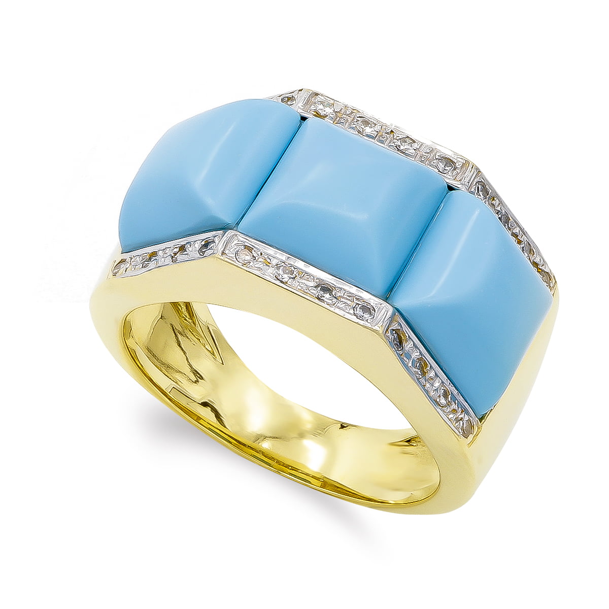 18K SORTIJA ORO AMARILLO TURQUESA Y CIRCONTAS