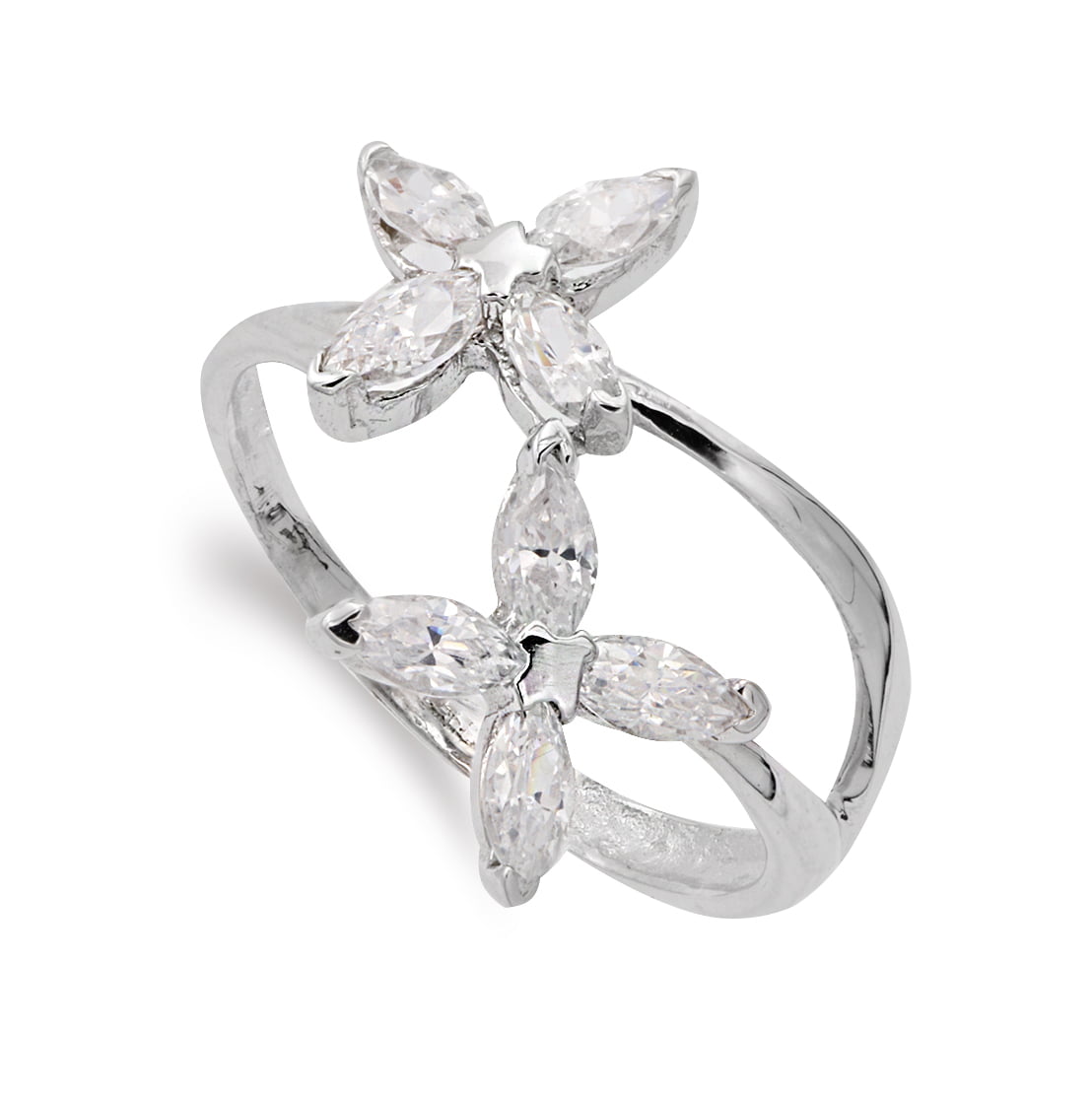 18K SORTIJA ORO BLANCO CON FLORES DE CIRCONITAS