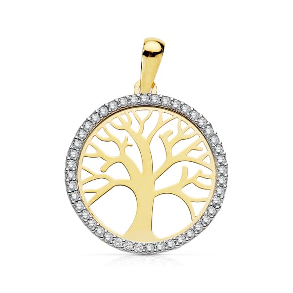 9K COLGANTE ORO BICOLOR ARBOL DE LA VIDA CON CIRCONITAS 20 MM