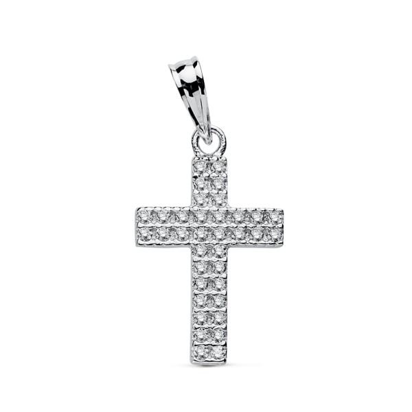 9K CRUZ ORO BLANCO CIRCONITAS 20X12 MM