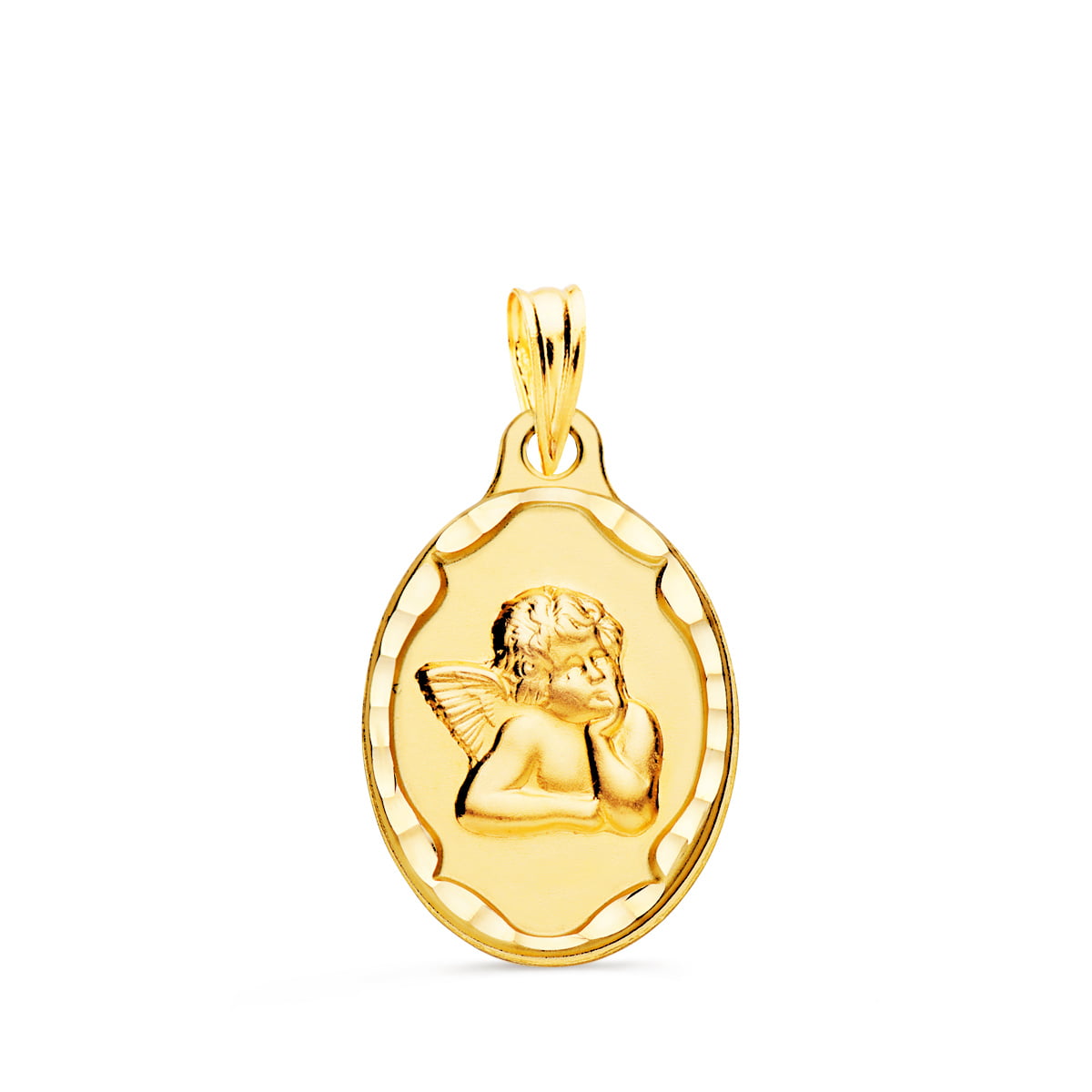 9K MEDALLA ANGELITO BURLON OVAL CERCO TALLADO 18X14 MM