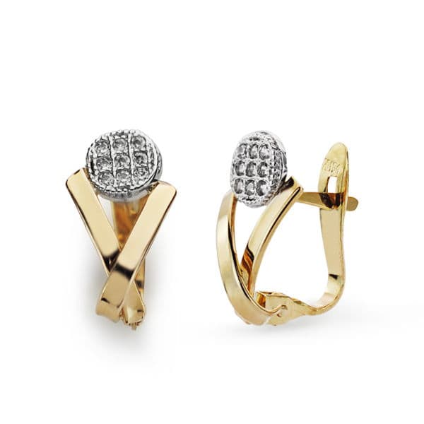 9K PENDIENTES BICOLOR CIRCONITAS 13X7 MM