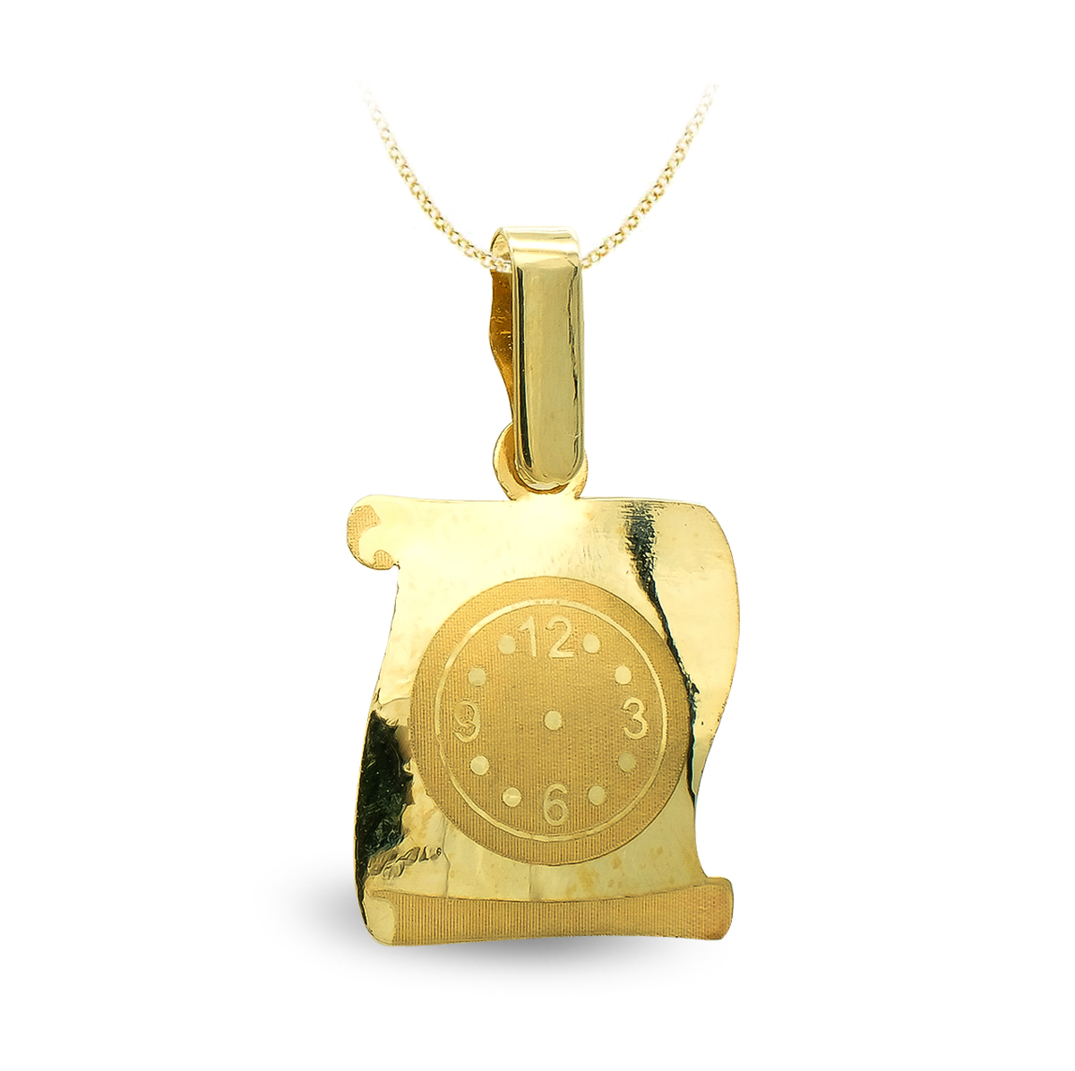 9K PERGAMINO ORO AMARILLO RELOJ GRABADO. 16 X 13 MM.