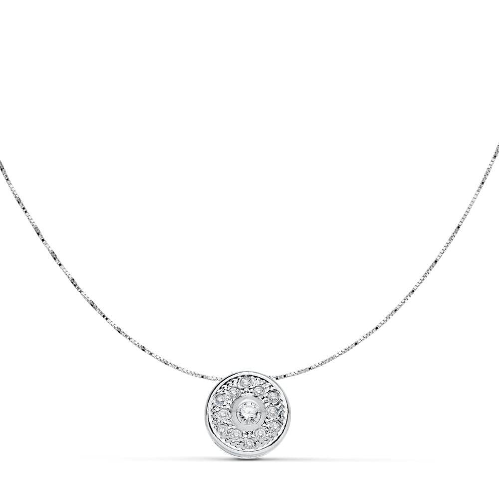 18K COLGANTE CIRCONITAS ORO BLANCO 8 MM CADENA 42CM