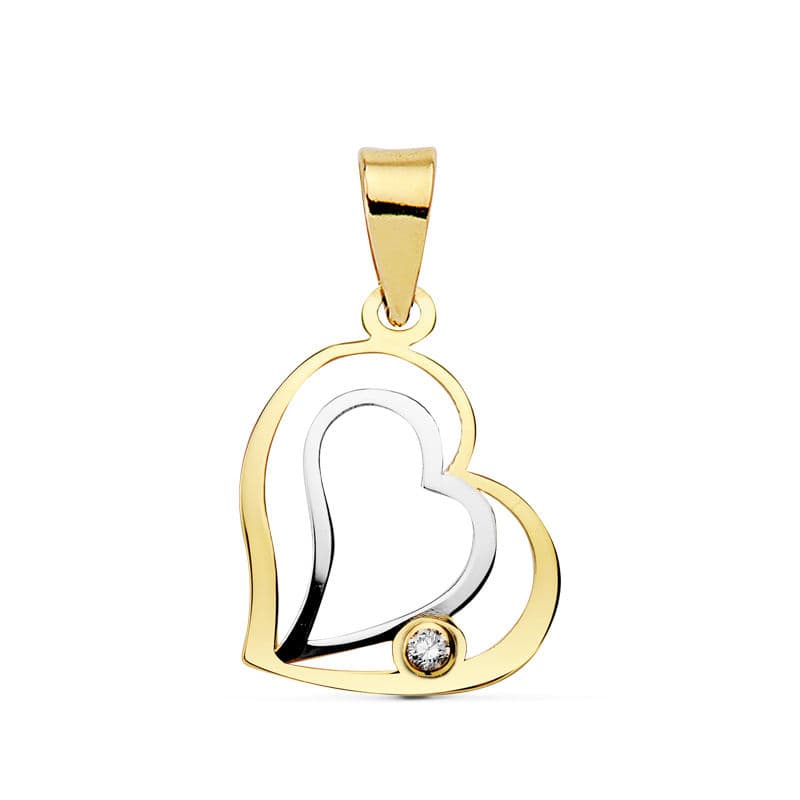 18K COLGANTE CORAZON BICOLOR 16X14 MM