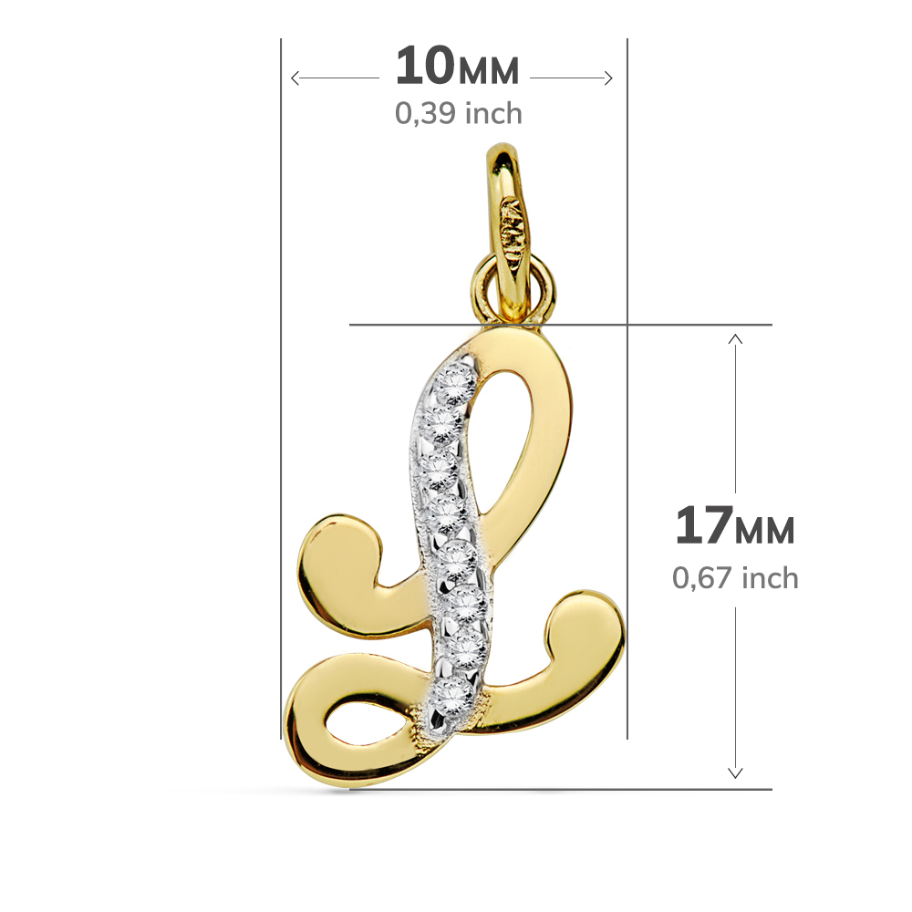 18K COLGANTE LETRA L CIRCONITAS 17X10 MM