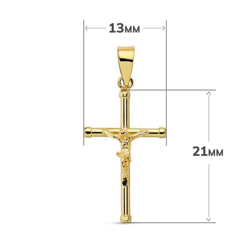 18K CRUZ ORO AMARILLO CON CRISTO TUBO HUECO 21 X 13 X 3 MM