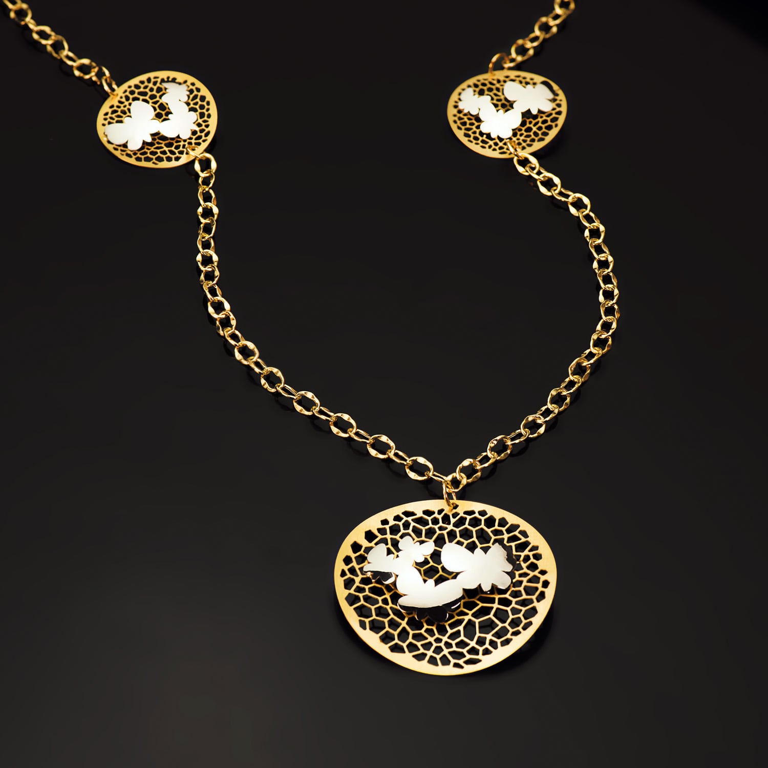 18K GARGANTILLA ORO BICOLOR COLGANTE REDONDO CON MARIPOSAS 47 CM