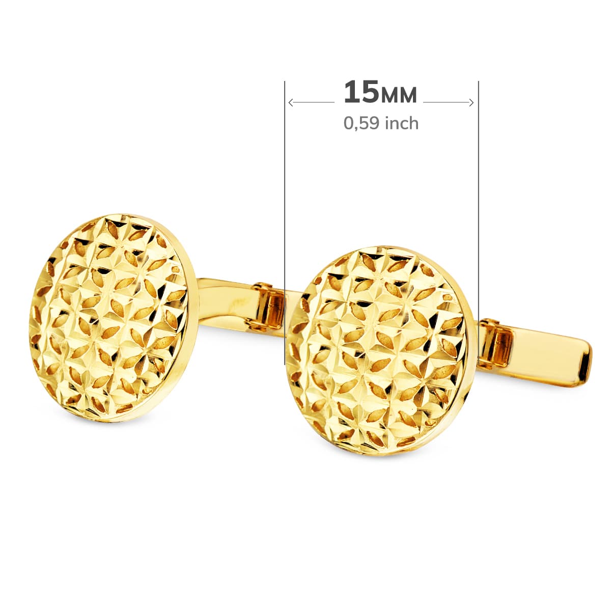 GEMELOS ORO AMARILLO REDONDOS TALLADOS Y CALADOS 15 MM CIERRE RIGIDO OCSILANTE