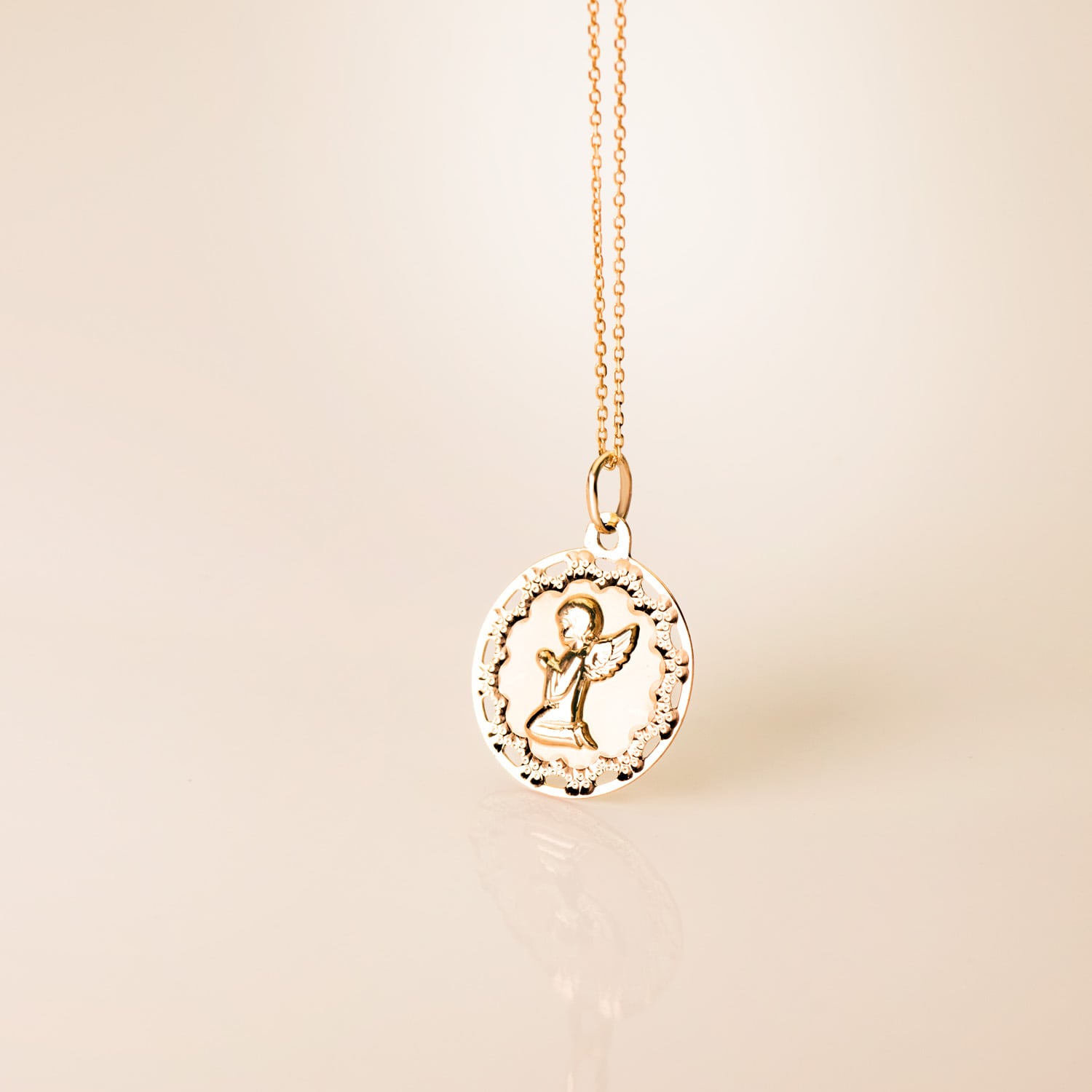 MEDALLA ÁNGEL REZANDO CERCO CALADO 18 MM.