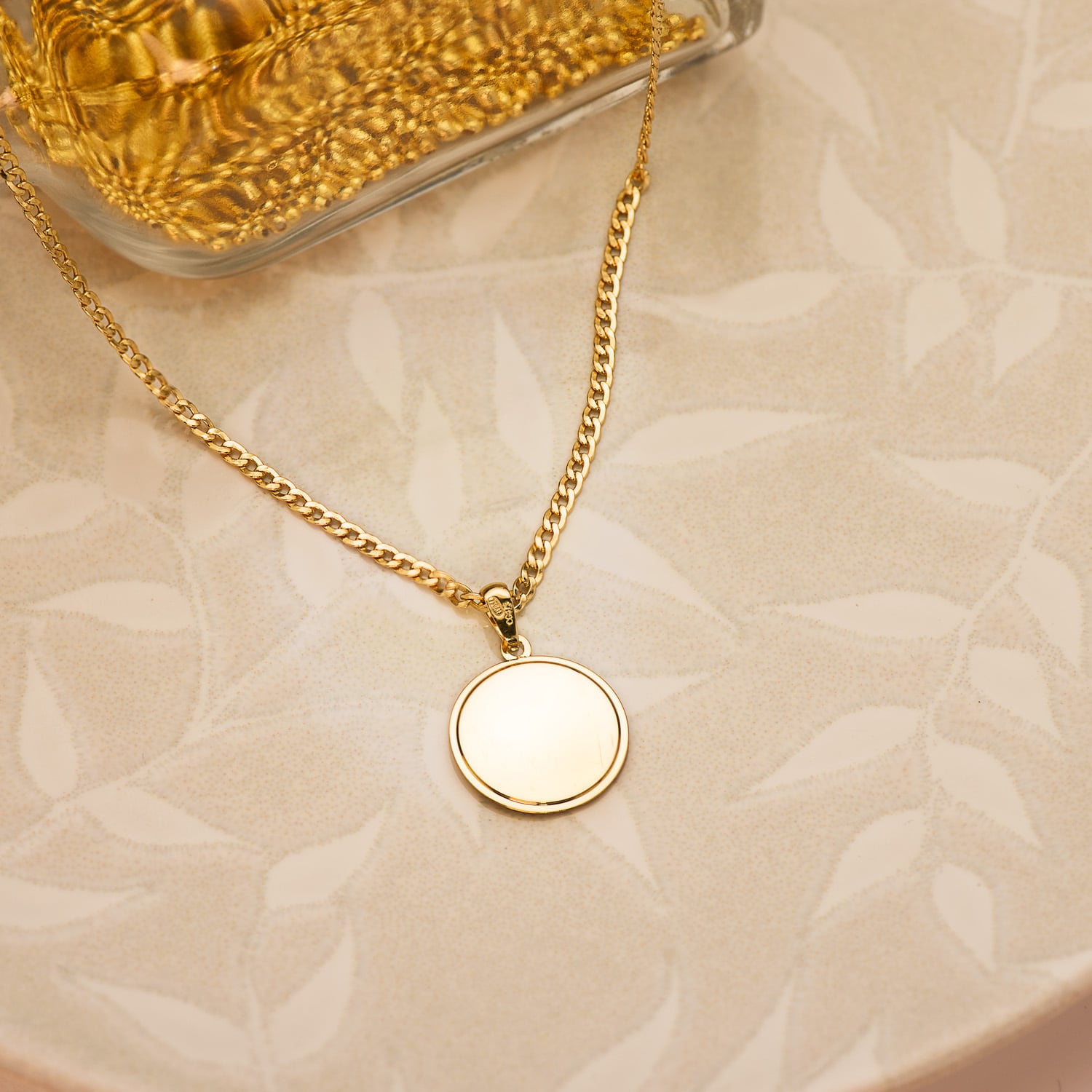18K MEDALLA ORO AMARILLO VIRGEN NIÑA NACAR REDONDA 17 MM