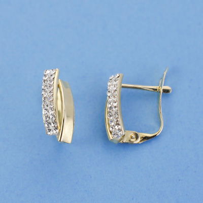 9K PENDIENTES ORO BICOLOR BANDAS PIEDRA 13X6 MM CIERRE CATALAN
