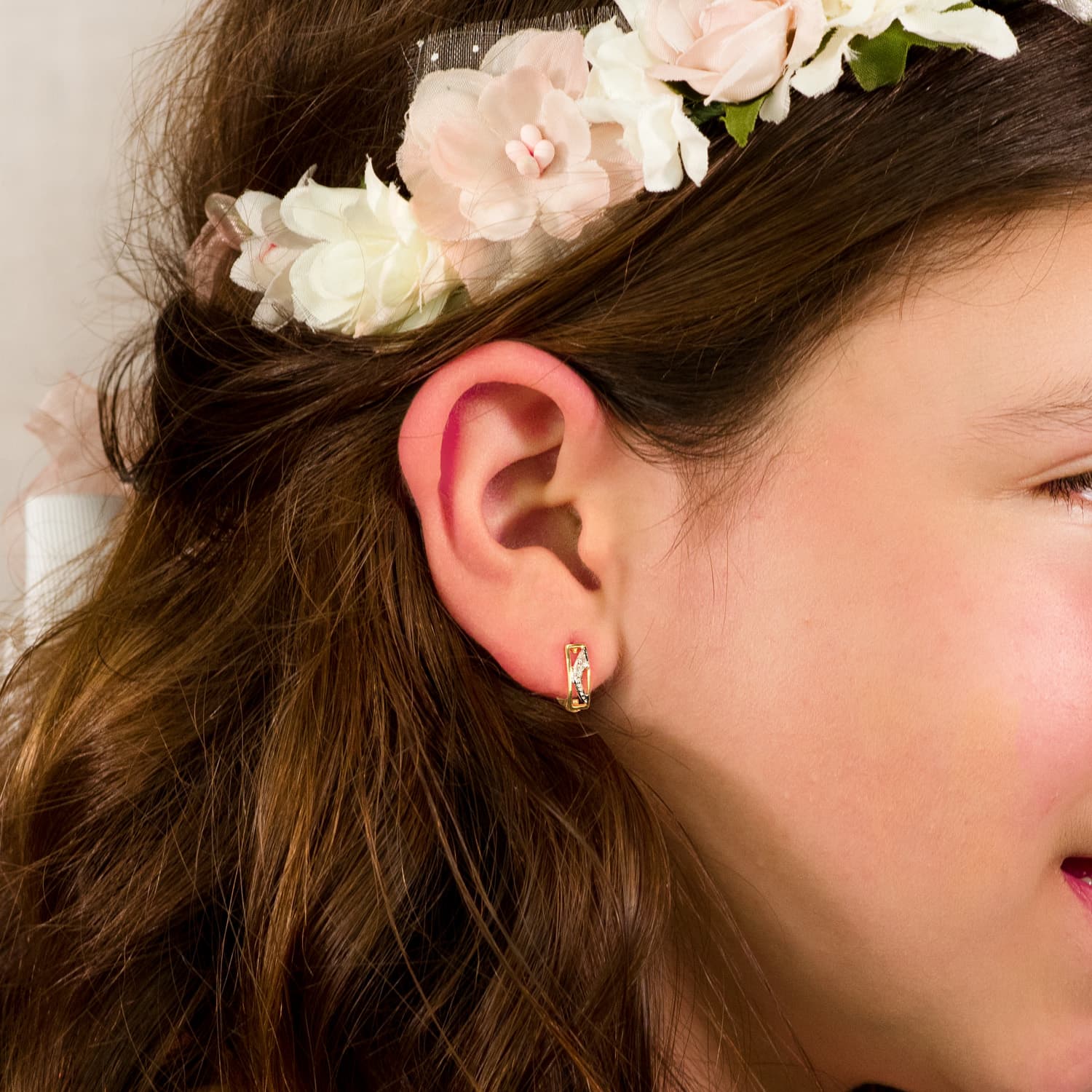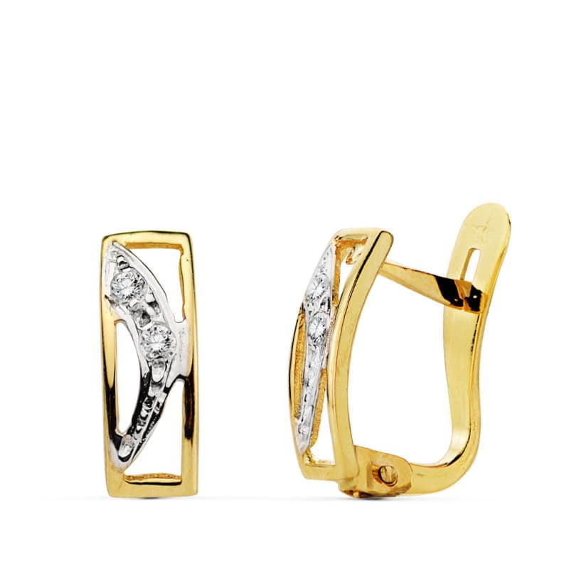 18K PENDIENTES BICOLOR CIRCONITA 10X4 MM