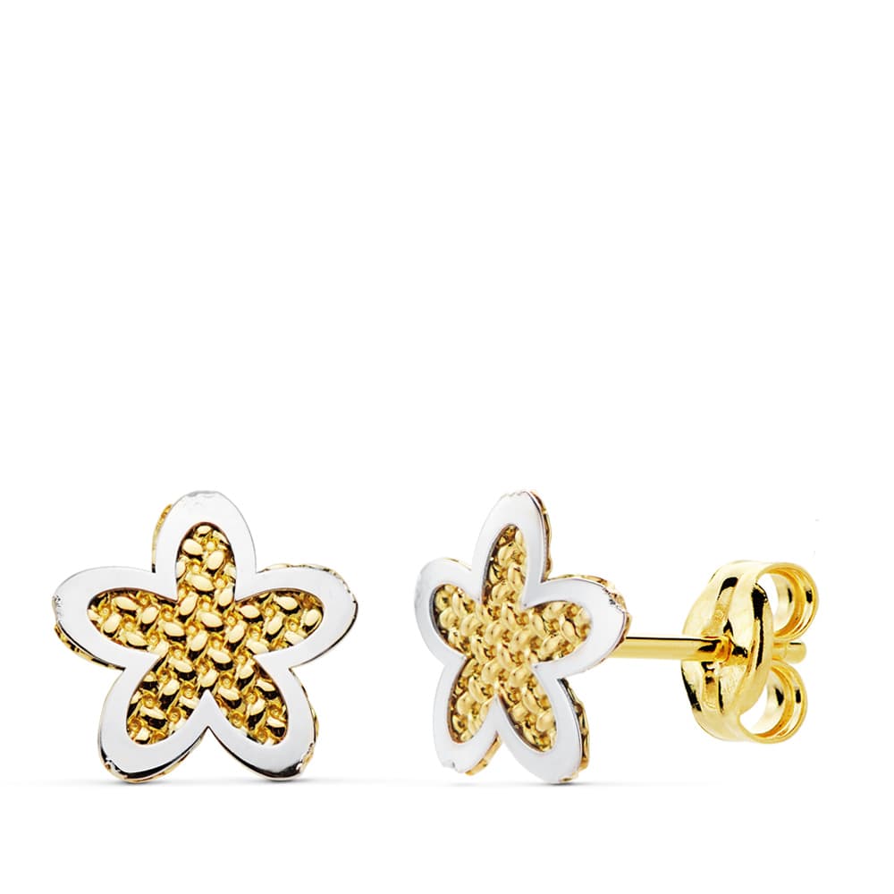 18K PENDIENTES ORO BICOLOR FLOR 7.5X7.5 MM