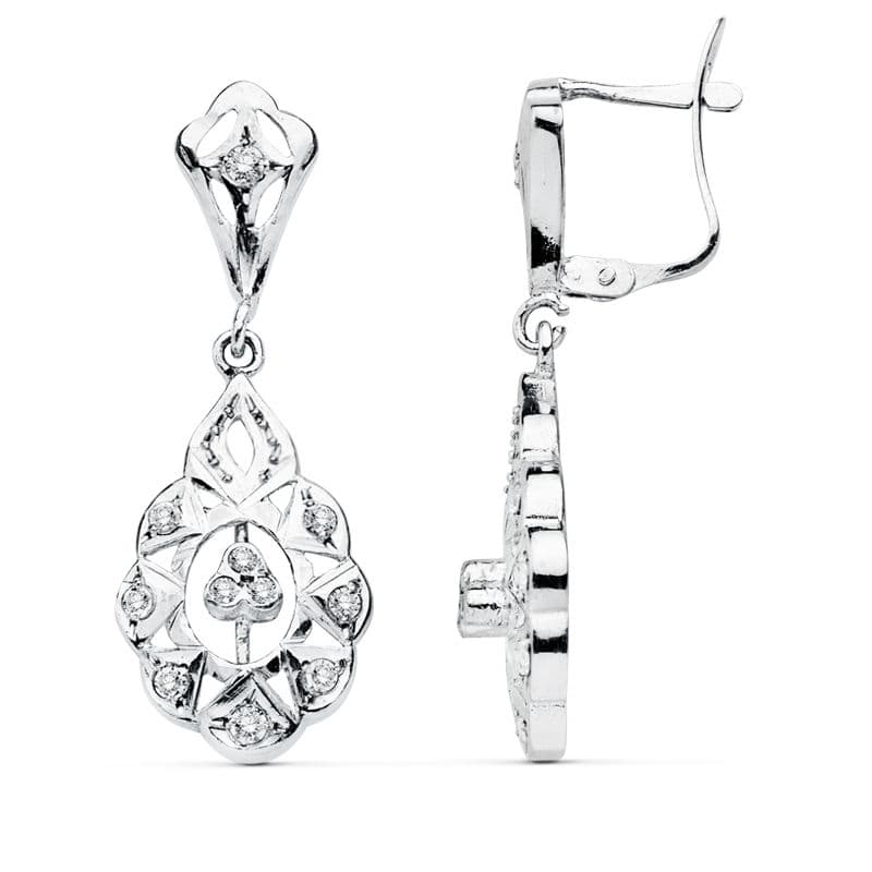 PENDIENTES CUBANAS ORO BLANCO 32 X 12 MM.