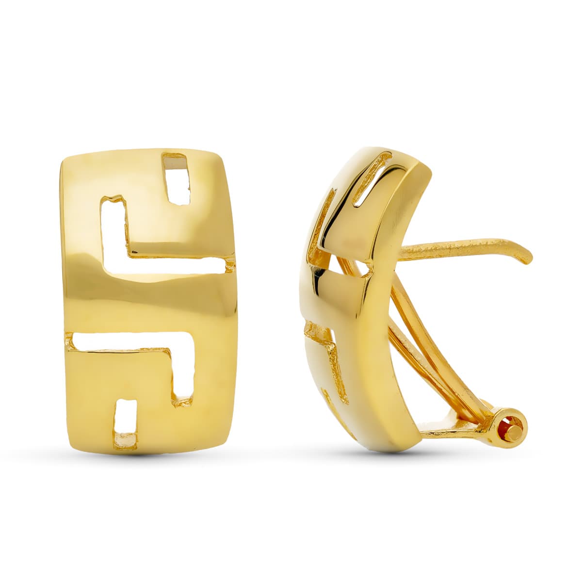 18K PENDIENTES ORO AMARILLO GRECA CALADA BRILLO 16X10 MM OMEGA