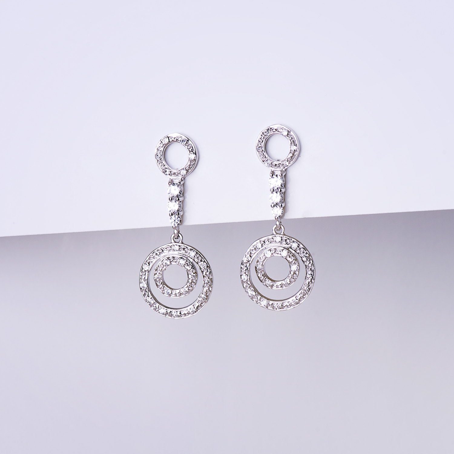 PENDIENTES LARGOS ORO BLANCO CIRCONITAS.